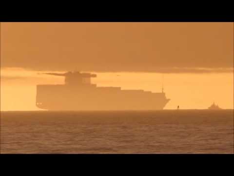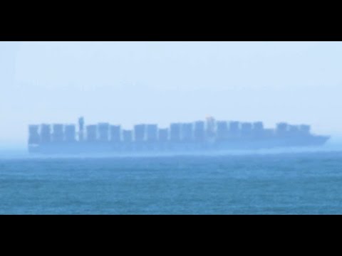 Amazing towering and superior mirage changing the shape of cargo ship on September 25, 2016