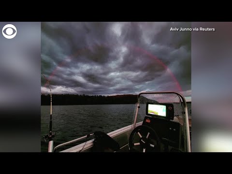 RED RAINBOW: A fisherman saw this rare red rainbow over a lake in Finland July 11